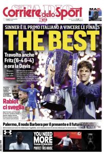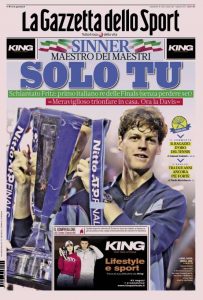L'edizione odierna de "La Gazzetta dello Sport" dedica un titolo in prima pagina a Sinner.