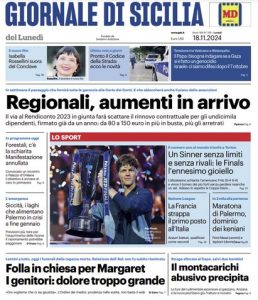 L'edizione odierna de "Il Giornale di Sicilia" dedica un titolo in prima pagina a Sinner.
