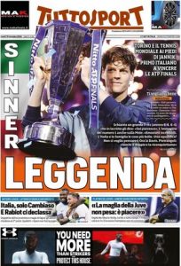 L'edizione odierna di Tuttosport dedica un titolo in prima pagina a Sinner.
