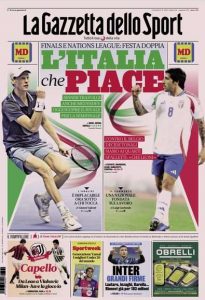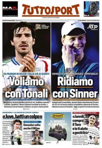 L'edizione odierna di Tuttosport dedica un titolo in prima pagina ai successi dell'Italia nel calcio e nel tennis.
