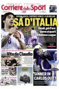 L'edizione odierna de "La Gazzetta dello Sport" dedica un titolo in prima pagina all'Italia che ha vinto contro il Belgio.