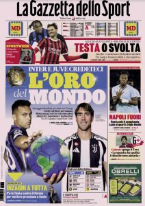 L'edizione odierna de La Gazzetta dello Sport dedica un titolo in prima pagina all'Inter.