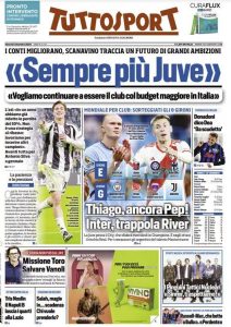L'edizione odierna di Tuttosport dedica un titolo in prima pagina alla Juventus.
