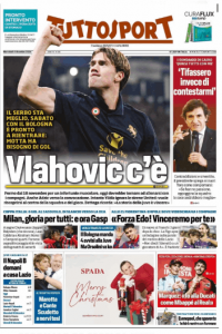 L'edizione odierna di Tuttosport dedica un titolo in prima pagina alla Juventus e a Vlahovic.