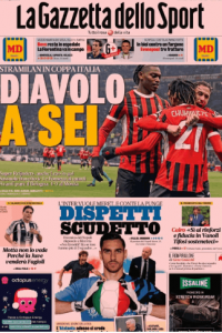 L'edizione odierna de "La Gazzetta dello Sport" dedica un titolo in prima pagina al Milan che ha vinto in Coppa...