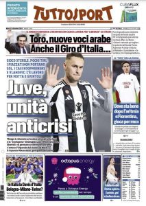 L'edizione odierna di Tuttosport dedica un titolo in prima pagina alla Juventus.