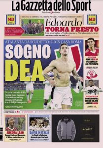 L'edizione odierna de La Gazzetta dello Sport dedica un titolo in prima pagina all'Atalanta.
