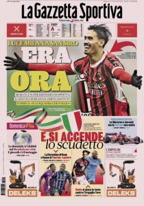 L'edizione odierna de La Gazzetta dello Sport dedica un titolo in prima pagina al Milan.
