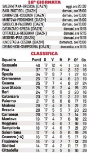 Inizia la diciottesima giornata di Serie b. Di seguito il programma completo. Venerdì 20 dicembre Ore 20.30 SALERNITANA – BRESCIA...