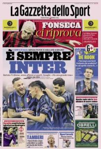 L'edizione odierna de La Gazzetta dello Sport dedica un titolo in prima pagina all'Inter.