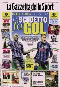 L'edizione odierna de La Gazzetta dello Sport dedica un titolo in prima pagina sulla sfida tra Inter e Atalanta.