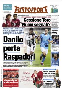 Prima pagina Tuttosport: “Danilo porta Raspadori”