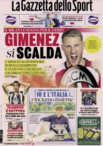 L'edizione odierna de La Gazzetta dello Sport dedica un titolo in prima pagina