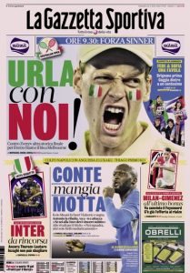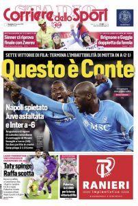 L'edizione odierna de La Gazzetta dello Sport dedica un titolo in prima pagina a Sinner.