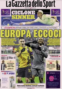 L'edizione odierna de La Gazzetta dello Sport dedica un titolo in prima pagina alle squadre impegnate in Europa.