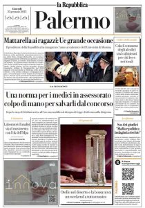 L'edizione odierna de La Repubblica Palermo dedica un titolo in prima pagina alle parole di Mattarella.