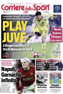 L'edizione odierna de La Gazzetta dello Sport dedica un titolo in prima pagina alle gare di Champions giocate ieri.