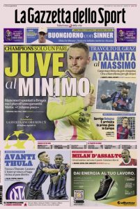 Prima pagina Gazzetta dello Sport: “Juve al minimo, Atalanta al massimo”