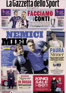 L'edizione odierna de La Gazzetta dello Sport dedica un titolo in prima pagina a Inter e Napoli.