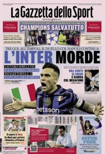 L'edizione odierna de La Gazzetta dello Sport dedica un titolo in prima pagina all'Inter.