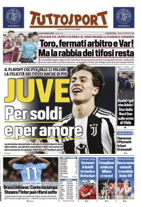 L'edizione odierna di Tuttosport dedica un titolo in prima pagina alla Juventus.