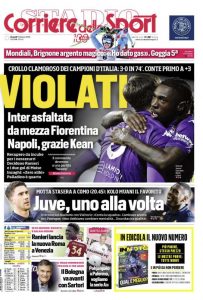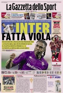 L'edizione odierna de La Gazzetta dello Sport dedica un titolo in prima pagina alla vittoria della Fiorentina sull'Inter.