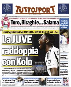 Prima pagina Tuttosport: “La Juve raddoppia con Kolo”