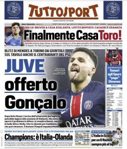 L'edizione odierna di Tuttosport dedica un titolo in prima pagina alla Juventus.