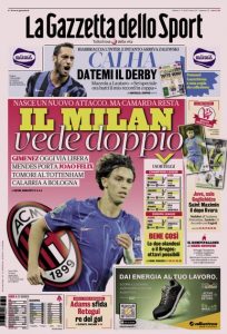 L'edizione odierna de "La Gazzetta dello Sport" dedica un titolo in prima pagina al Milan.