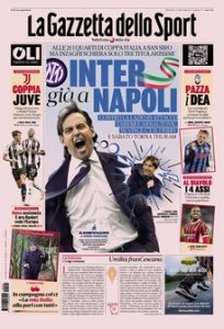 L'edizione odierna de La Gazzetta dello Sport dedica un titolo in prima pagina all'Inter.