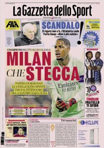 L'edizione odierna de La Gazzetta dello Sport dedica un titolo in prima pagina al Milan.
