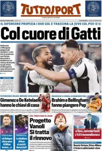 L'edizione odierna di Tuttosport dedica un titolo in prima pagina alla Juventus.