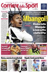 L'edizione odierna de La Gazzetta dello Sport dedica un titolo in prima pagina alla Juventus.