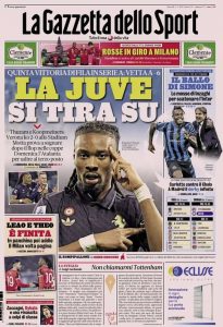 L'edizione odierna de La Gazzetta dello Sport dedica un titolo in prima pagina alla Juventus.