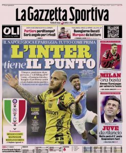 L'edizione odierna de La Gazzetta dello Sport dedica un titolo in prima pagina all'Inter.
