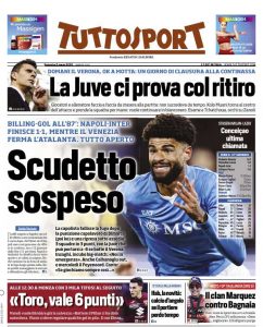 L'edizione odierna di Tuttosport dedica un titolo in prima pagina allo scudetto.