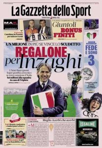 Prima pagina Gazzetta dello Sport: “Regalone per Inzaghi”