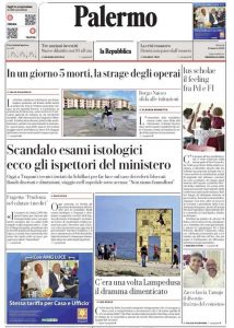 L'edizione odierna de La Repubblica Palermo dedica un titolo in prima pagina alla strage degli operai.