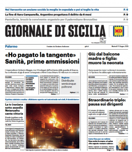 Prima pagina Giornale di Sicilia: “«Ho pagato la tangente» Sanità, prime ammissioni”