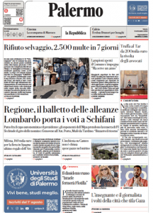 Prima pagina Repubblica Palermo: “Rifiuto selvaggio, 2.500 multe in 7 giorni”