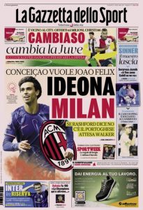 L'edizione odierna de La Gazzetta dello Sport dedica un titolo in prima pagina al Milan.