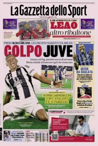 L'edizione odierna de La Gazzetta dello Sport dedica un titolo in prima pagina alla Juventus.