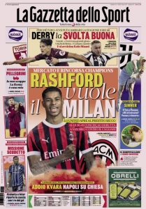 L'edizione odierna de La Gazzetta dello Sport dedica un titolo in prima pagina al Milan.