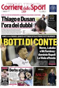 L'edizione odierna de La Gazzetta dello Sport dedica un titolo in prima pagina alla finale della Supercoppa.