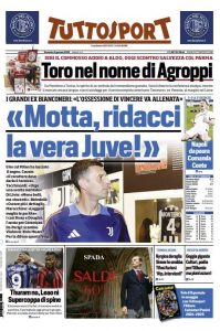 L'edizione odierna di Tuttosport dedica un titolo in prima pagina alla Juventus.