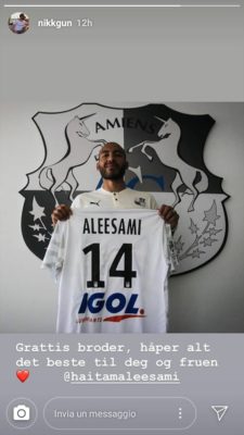 Attraverso le proprie storie instagram, Niklas Gunnarsson si congratula con l’ormai ex compagno di squadra Aleesami per la sua nuova avventura iniziata ieri all’Amiens scrivendo: “Congratulazioni Fratello! Auguro il meglio a te e alla tua signora”. Ecco in alto la stories in questione: