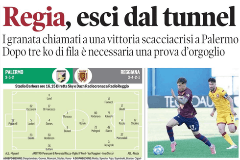 Gazzetta di Reggio: “Regia, esci dal tunnel. I granata chiamati a una vittoria scacciacrisi a Palermo”