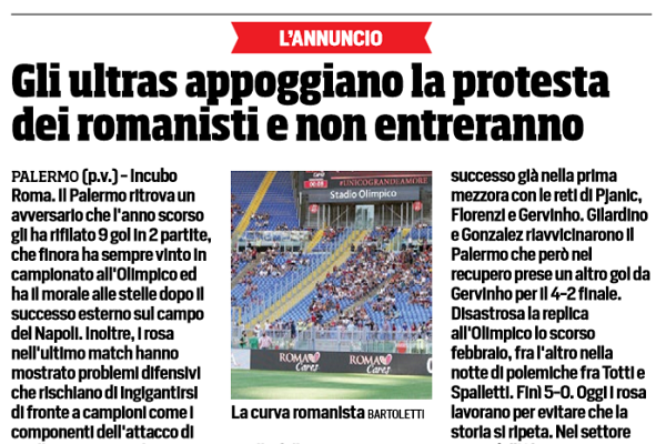 "Incubo Roma. Il Palermo ritrova un avversario che l'anno scorso gli ha rifilato 9 gol in 2 partite, che finora...