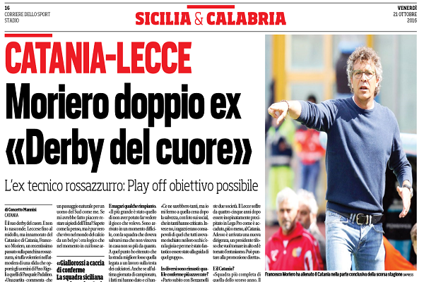 "È il suo derby del cuore. E non lo nasconde. Leccese fino al midollo, ma innamorato del Catania e di...