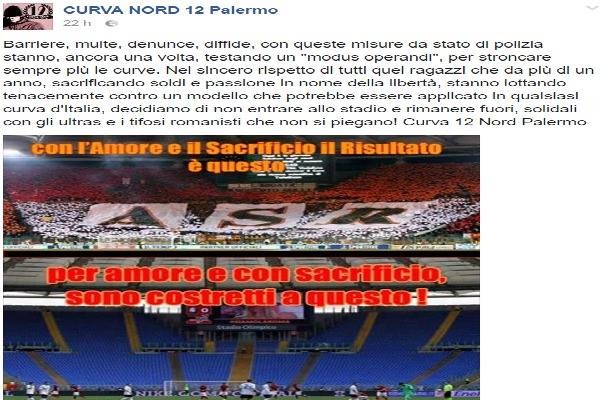 Attraverso la propria pagina Facebook, il gruppo ultras del Palermo "Curva Nord 12" comunica della loro decisa posizione per la...